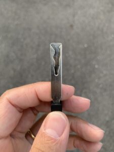 近頃のキーマシーンは純正品と変わらないぐらい高精度に鍵を切ってくれるので、殆ど1回のカットで鍵が完成します。